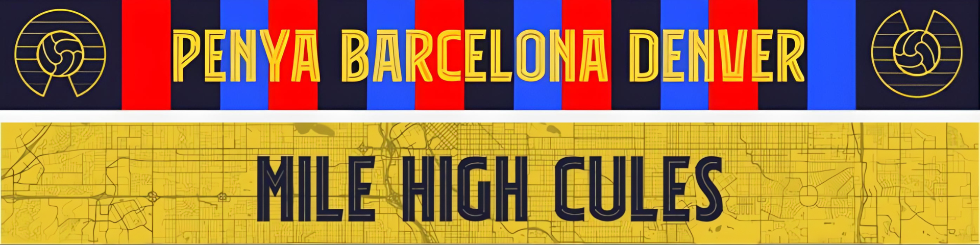 For the 2025-2026 season, our scarf design is a vibrant nod to Barcelona/Catalan colors. I ingeniously split our group's logo in half, so when you wear the scarf, the two sides connect to form a complete, cohesive emblem. Plus, I had some fun with a play on words: "Culerado" — blending "Culé" (the affectionate term for Barcelona fans) with Colorado — to create a unique identity for our Denver-based group.